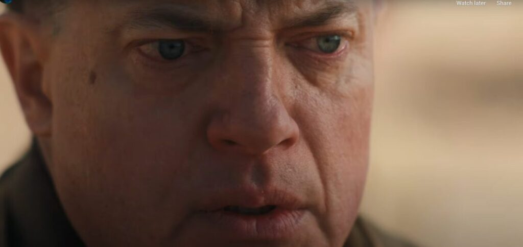 Це вже не пригодницький герой із Мумія, а стриманий стратег, людина під тиском відповідальності. У трейлері Фрейзер виглядає переконливо: холодна рішучість, внутрішній конфлікт і вага рішення читаються у кожному погляді.