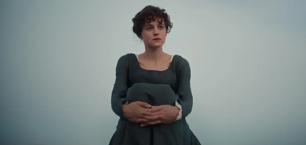 Перший ролик не розкриває деталей сюжету, але чудово задає тон. У кадрі з’являється Елізабет Беннет у виконанні Емма Коррін — героїня стоїть на даху будинку під час заходу сонця. Вітер грає її сукнею, світло м’яко окреслює силует, і вже за кілька секунд стає зрозуміло: автори роблять ставку на емоційність і візуальну поезію.